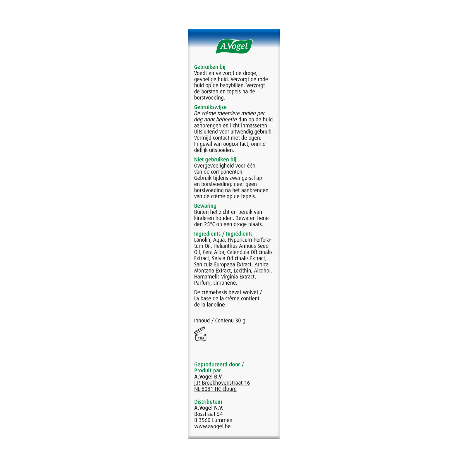 Crème Bioforce is een natuurlijke, vette crème op basis van wolvet en heilzame planten zoals valkruid, goudsbloem, toverhazelaar, salie en heelkruid. De crème bevordert een gave huid. Ze houdt de huid ook soepel, zowel bij een ruwe en schrale als bij een droge en gevoelige huid. Ook te gebruiken bij luieruitslag en gevoeligheid van de tepel bij borstvoeding.